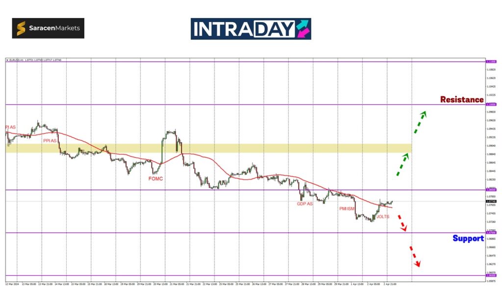 Sekiranya berjaya ditembusi, harga berkemungkinan akan paparkan corak kenaikan lebih jelas untuk menuju sasaran pada 1.09000.