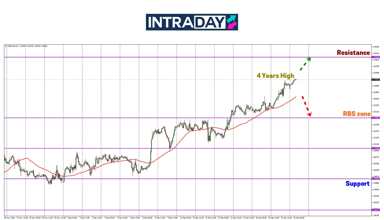 Memerhati carta USD/CAD, harga melonjak melepasi paras ketinggian 1.43000 di sesi New York semalam menandakan harga tertinggi dicapai dalam tempoh 4 tahun.