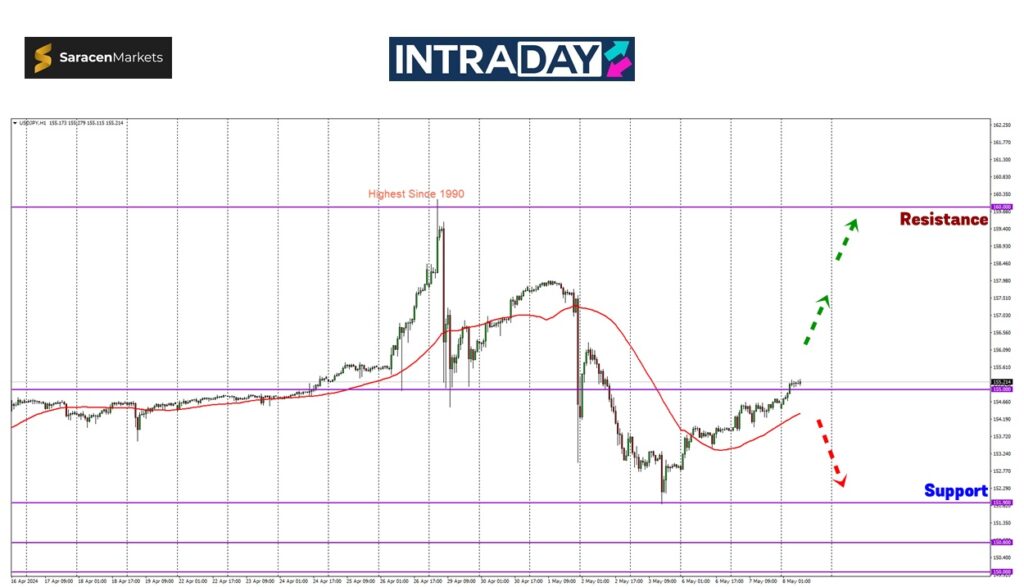 Sekiranya harga berjaya mengekalkan pemulihan, harga akan meneruskan pendakian ke paras tumpuan pada 158.00 sebelum zon 160.00 akan kembali menjadi sasaran untuk dicapai.