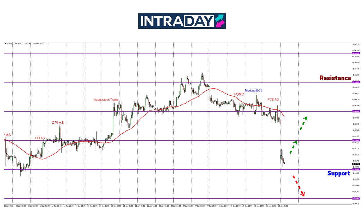Jika kelebihan terus berpihak kepada US dolar, harga bakal turun lebih rendah di bawah 1.02000 sebelum melanjutkan penurunan ke sasaran baharu pada 1.01000 pula.