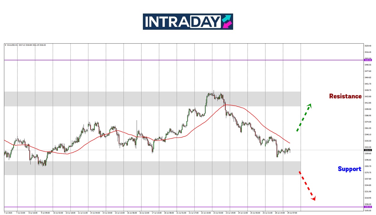Penurunan jelas diteruskan pada awal sesi New York semalam hingga harga hampir mencecah paras 3300.00 sebelum pergerakan harga mula mendatar hingga ke penutup sesi tersebut.