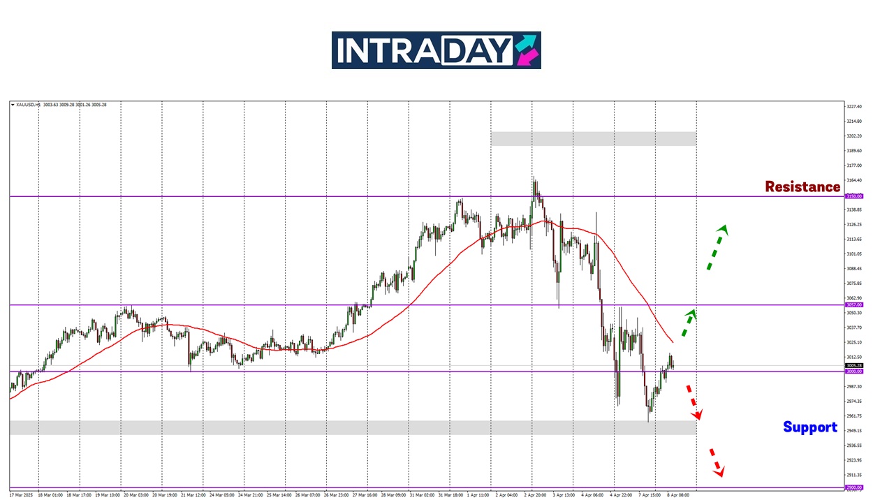 Paras terendah terbaru yang dicecah adalah sekitar 2957.00 sebelum harga perlahan mendaki semula pada sesi Asia pagi ini (Selasa) ke paras 3000.00.