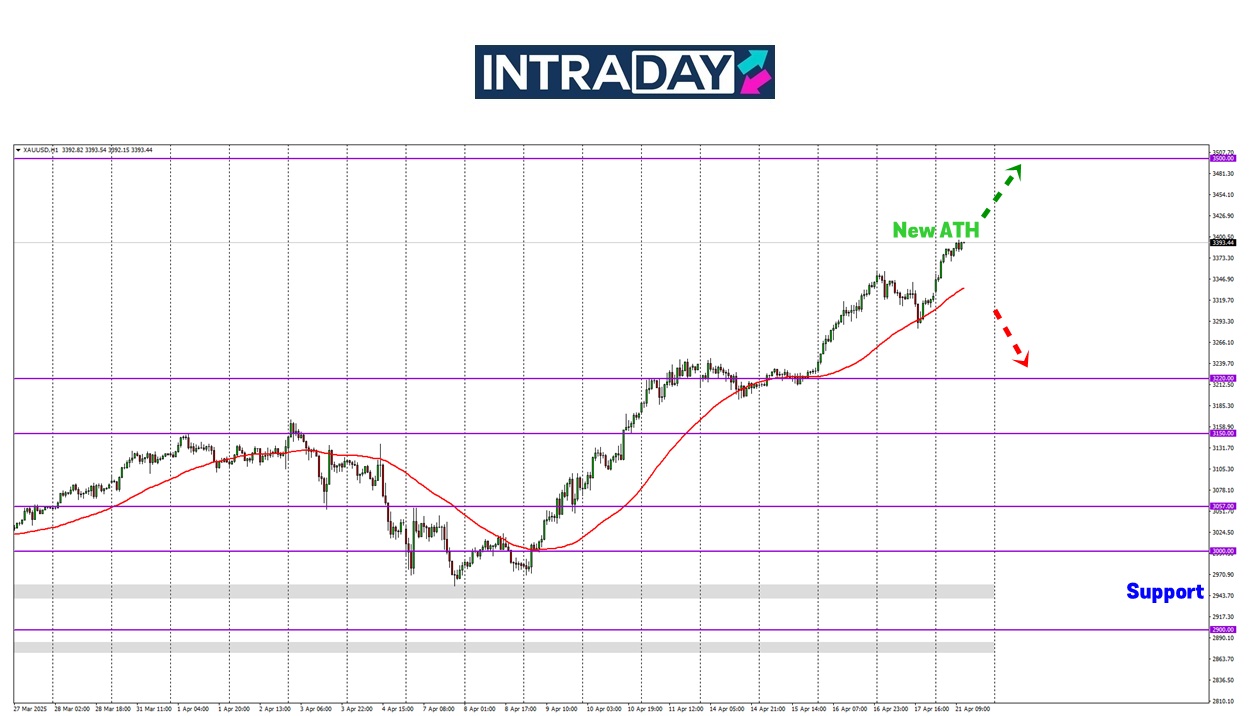 Sehingga setakat jam 4 petang waktu tempatan, harga emas telah mencapai paras tertinggi pada 3395.00 dengan jangkaan kenaikan akan diteruskan.