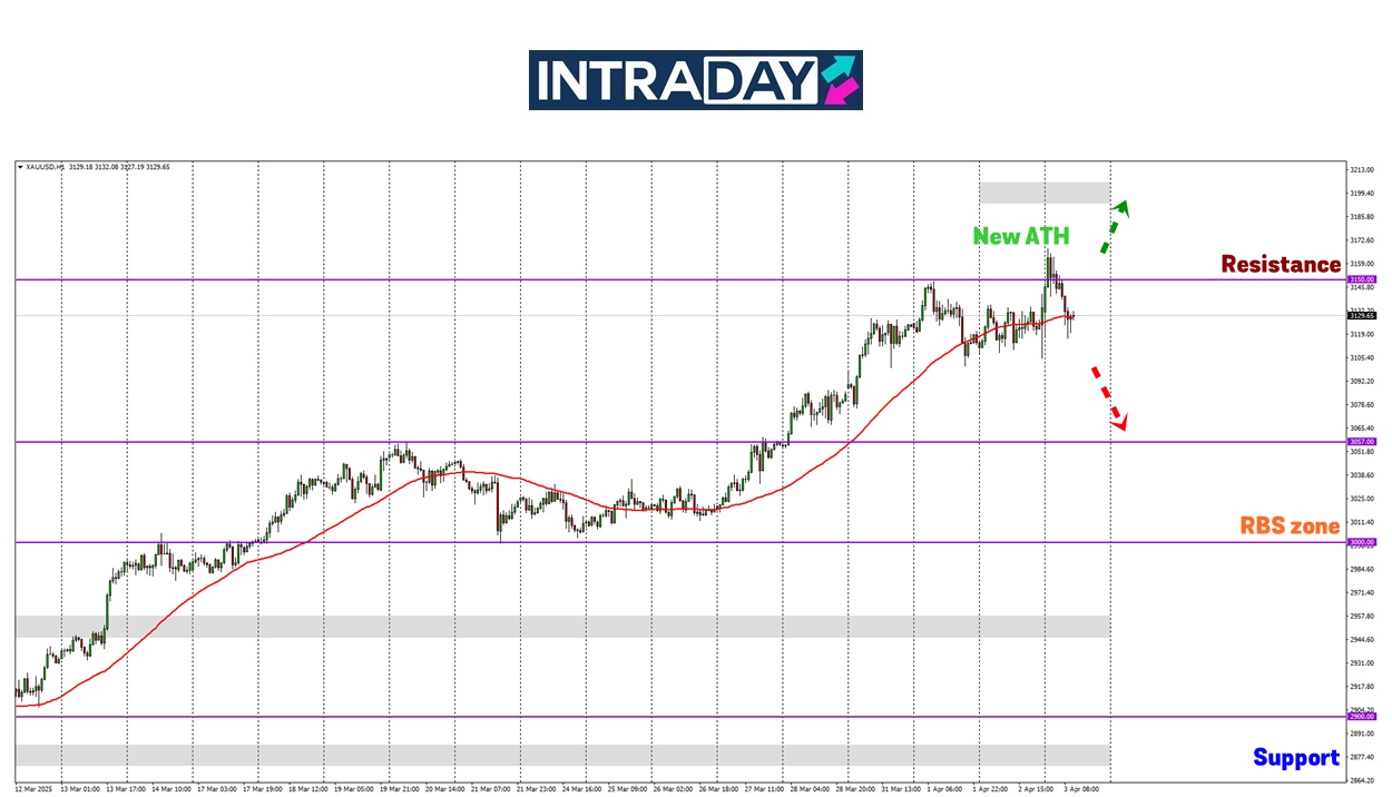 Pengunduran harga di bawah paras 3100.00 boleh menekan harga menuju semula zon tumpuan sekitar 3057.00.