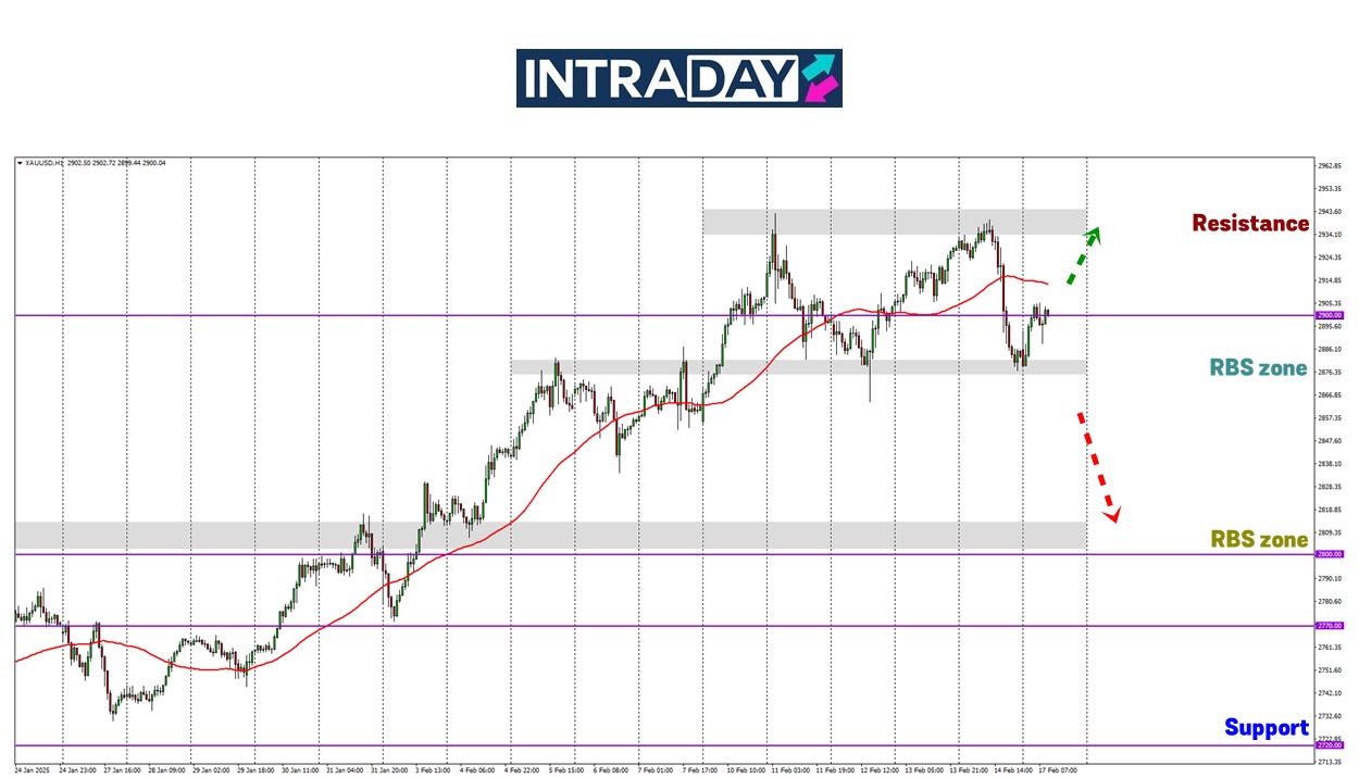 Sekiranya harga gagal melepasi halangan di paras 2900.00, penurunan lebih rendah boleh berlaku yang seterusnya melepasi pula zon RBS 2880.00.