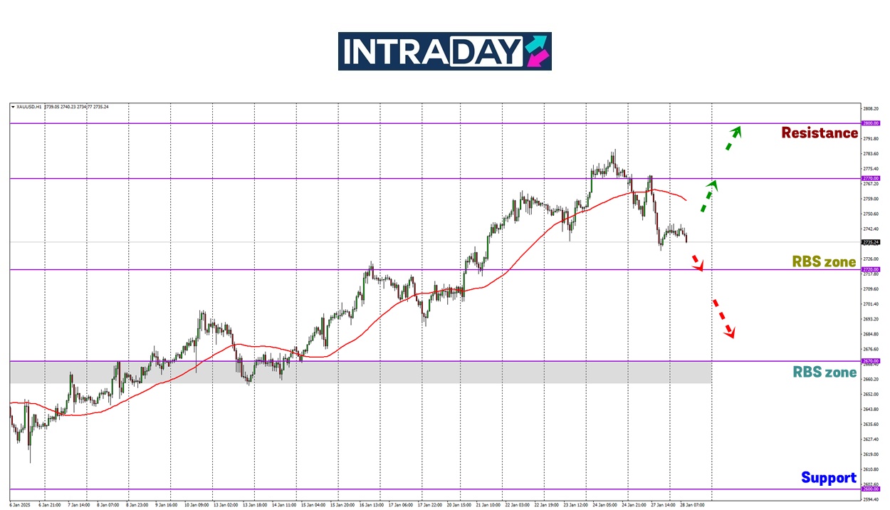 Di pembukaan sesi Asia semalam, harga menunjukkan terjunan dari paras 2770.00 mencecah sekitar 2750.00 sebelum di sesi Eropah melantun semula ke paras 2770.00.