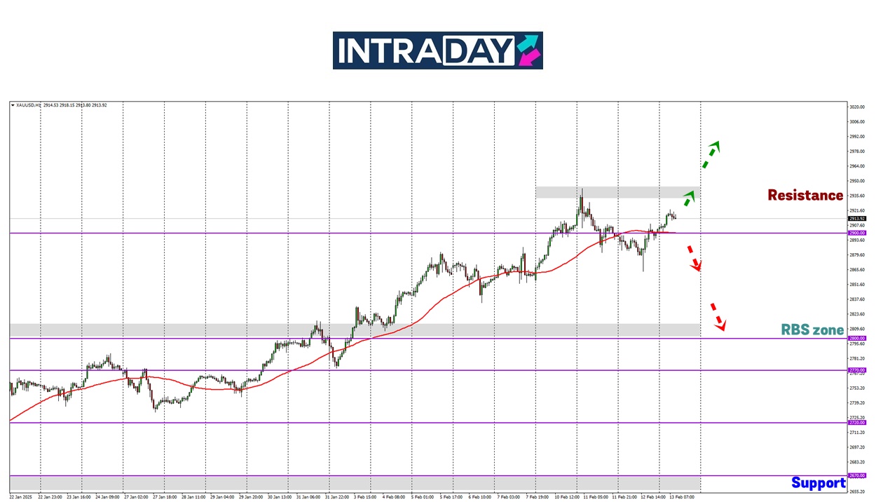 Setelah petunjuk jelas yang mendorong kejatuhan emas, harga boleh menuju sehingga sekitar 2850.00 hingga ke zon 2800.00.