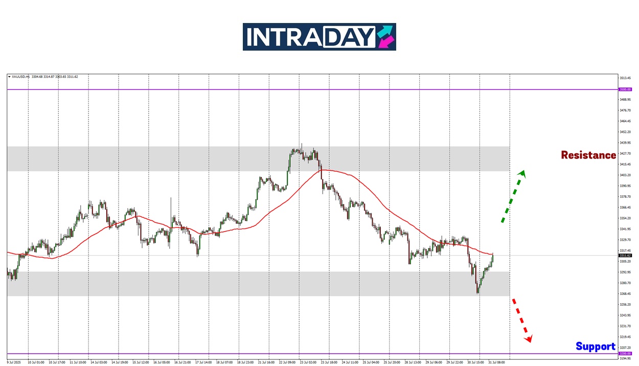 Jika tarikan terhadap emas kembali meningkat, harga boleh mencapai semula sehingga ke paras 3400.00 selepas penurunan dari ketinggian tersebut minggu lalu.
