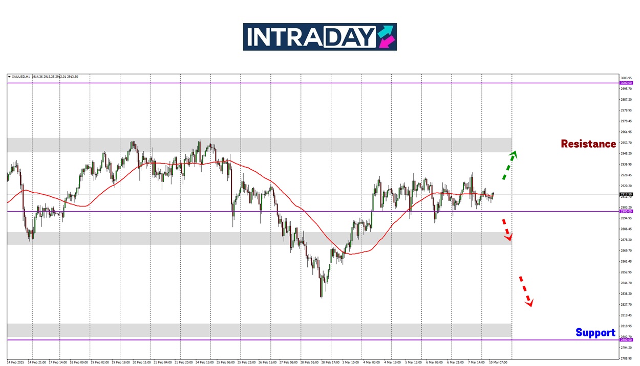 Jika diteliti pergerakan pada carta XAU/USD yang mengukur nilai emas berbanding US dolar, harga telah berlegar beberapa hari dalam julat antara paras 2900.00 hingga 2930.00.