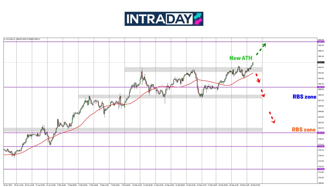Selepas kembali semula ke zon rintangan 2940.00, corak kenaikan harga emas diteruskan di sesi Eropah menyaksikan rekod baharu dipecahkan lagi dan sehingga setakat jam 4.30 petang, harga telah mencatatkan rekod tertinggi sepanjang masa terbaru pada 2954.00.