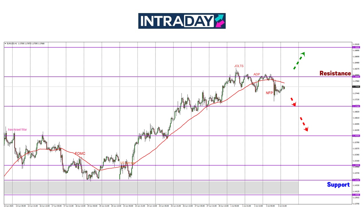 Jika dilanjutkan penurunan lebih rendah, harga bakal menguji zon tumpuan minggu lalu iaitu pada 1.17000.