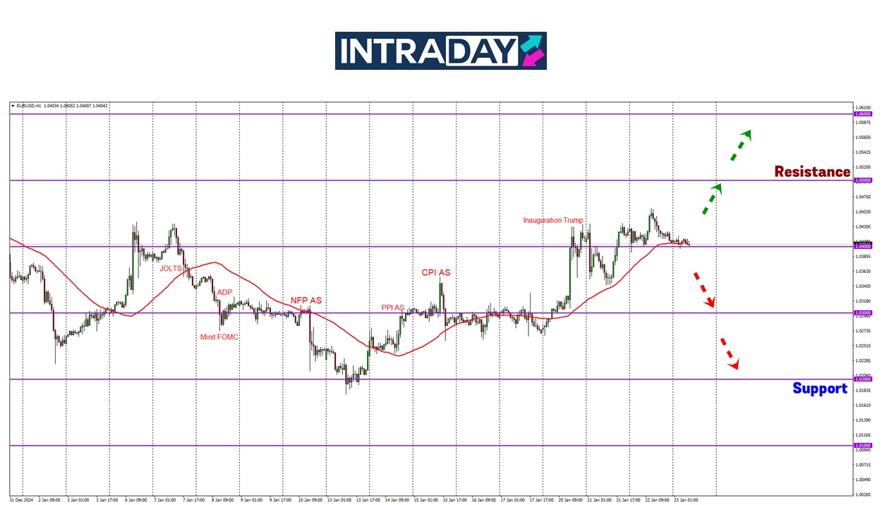 Kenaikan pada carta EUR/USD semalam telah mencapai paras ketinggian 1.04500 sebelum kembali berundur turun semula ke zon tumpuan 1.04000.