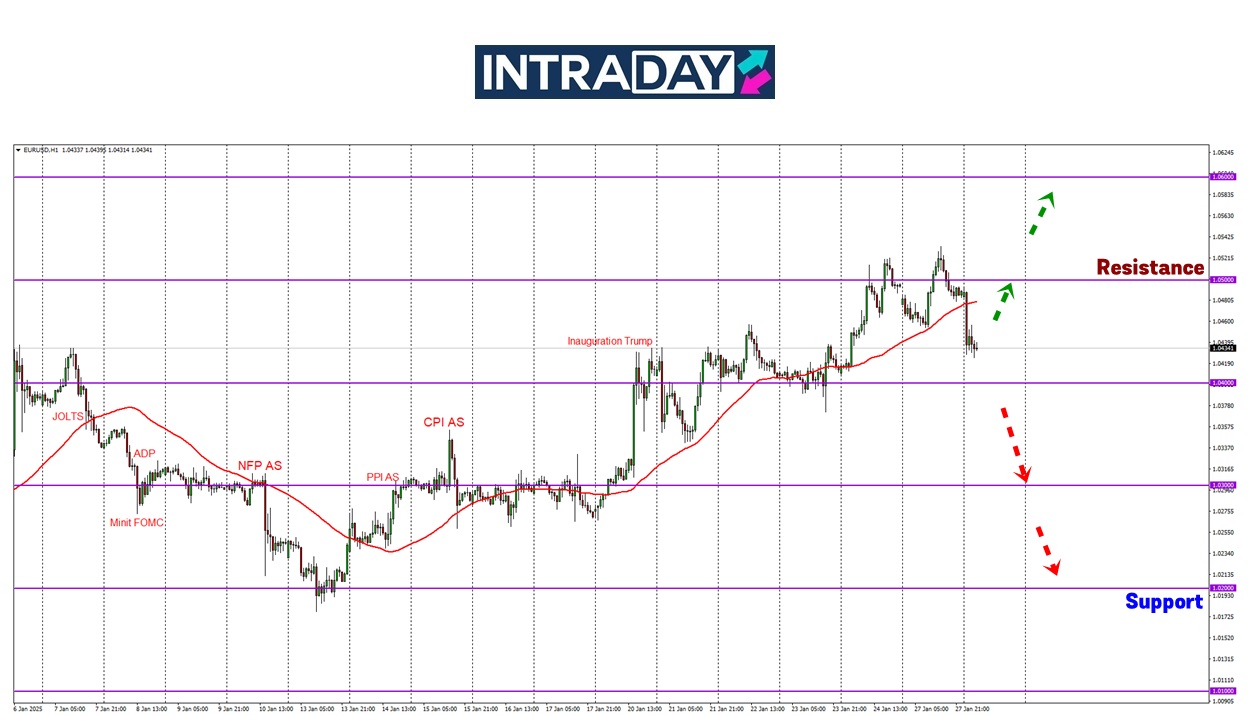 Jika penurunan dilanjutkan, harga bakal hampiri sekitar 1.04000 untuk menguji zon tumpuan tersebut seperti pada minggu lalu.