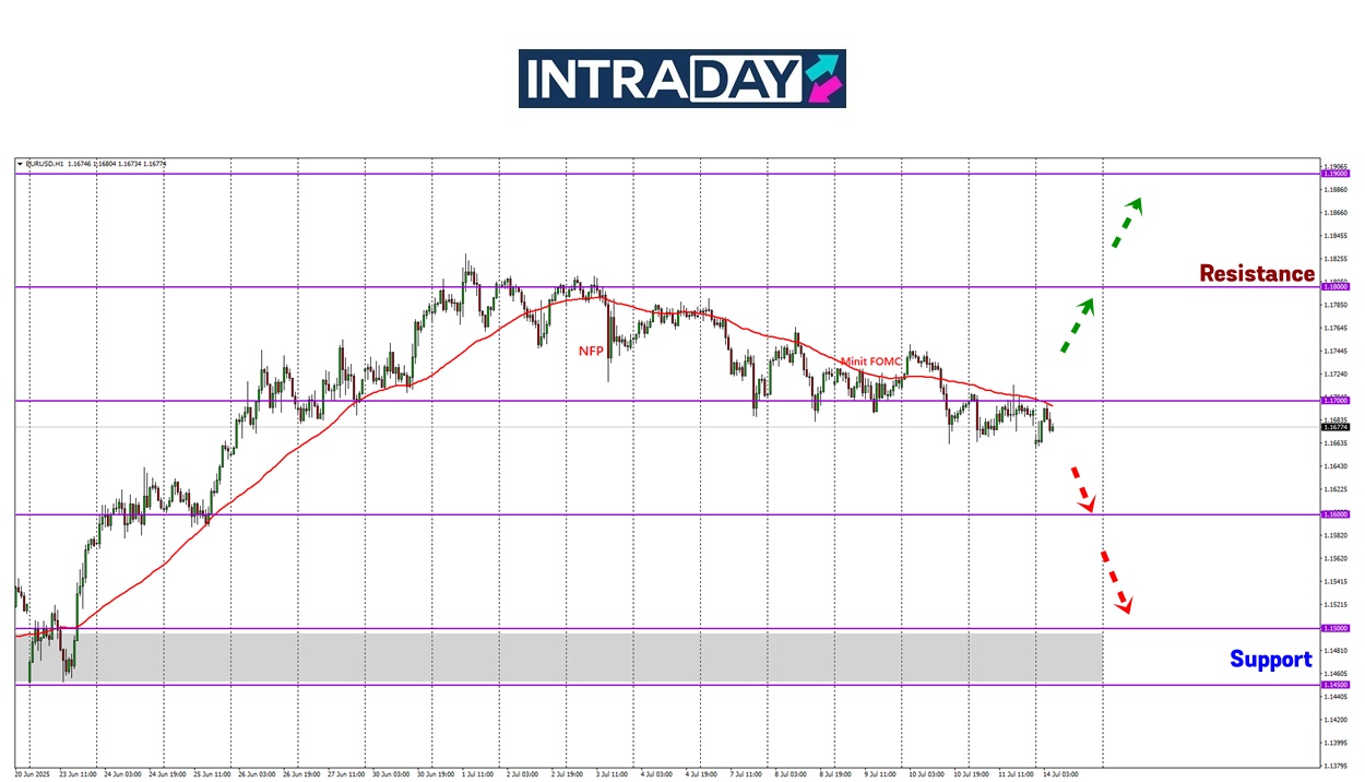 Untuk jangkaan bagi penurunan lanjut, harga dijangka menuju zon tumpuan pada 1.16000 dan tidak mustahil untuk susut lebih rendah ketika ekonomi Eropah diancam tarif baharu dan menekan mata wang Euro.