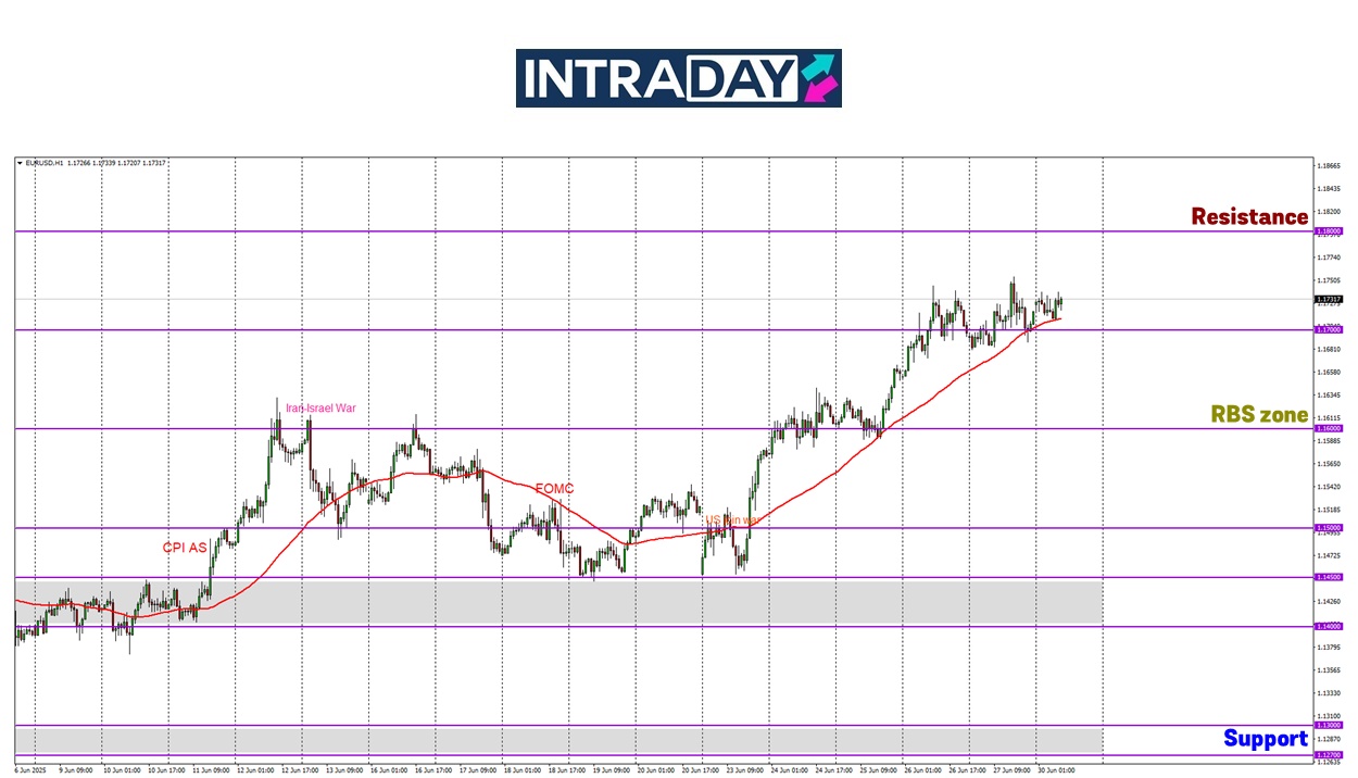 Dagangan di pembukaan awal minggu ini masih berlegar di atas zon 1.17000 dan harga dilihat meniti di atas garisan sokongan moving Average 50 (MA50) pada rangka masa 1 jam di carta itu.