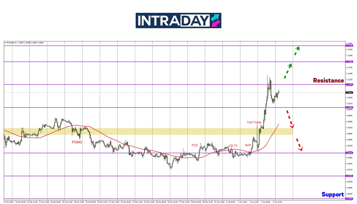 Lonjakan harian lebih 300 pips telah dipaparkan pada carta pasangan mata wang EUR/USD Khamis semalam gara-gara pengumuman tarif resiprokal oleh Presiden Donald Trump.