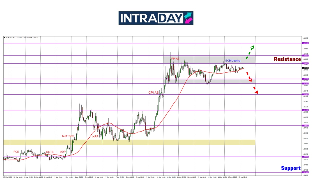 Sekiranya corak kenaikan harga berjaya diteruskan melepasi zon rintangan 1.14000, harga berpotensi untuk mencabar ketinggian yang dicapai minggu lalu pada 1.14700.