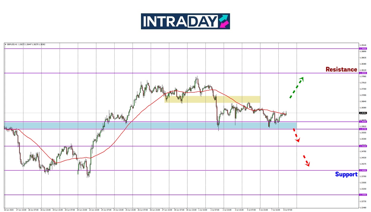 Pergerakan harga pada carta pasangan mata wang GBP/USD dilihat sekali lagi menguji zon sokongan pada 1.36000.