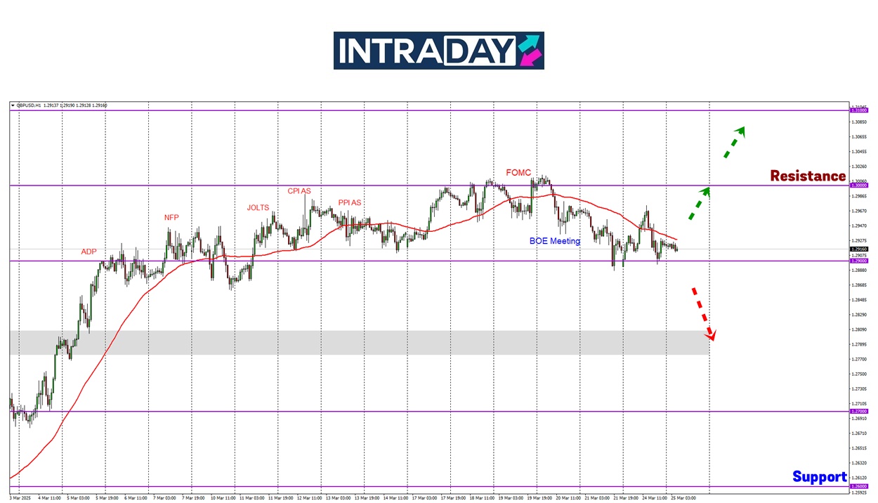 Namun, selepas mencapai ketinggian pada 1.29700, harga kembali menjunam jatuh susulan ditekan oleh pengukuhan US dolar sehingga menyentuh semula support pada 1.29000.