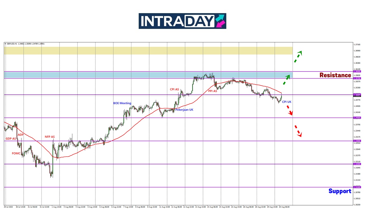 Penurunan perlahan dilanjutkan pada sesi Asia pagi ke sekitar 1.34600 sebelum harga mula melonjak setelah data inflasi UK diterbitkan.