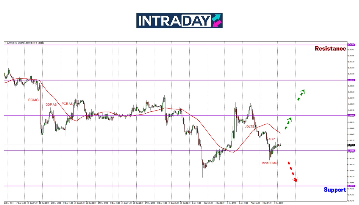 Pada carta pasangan mata wang EUR/USD, harga telah menyambung penurunan lebih rendah hingga menembusi 1.03000 di sesi New York semalam.