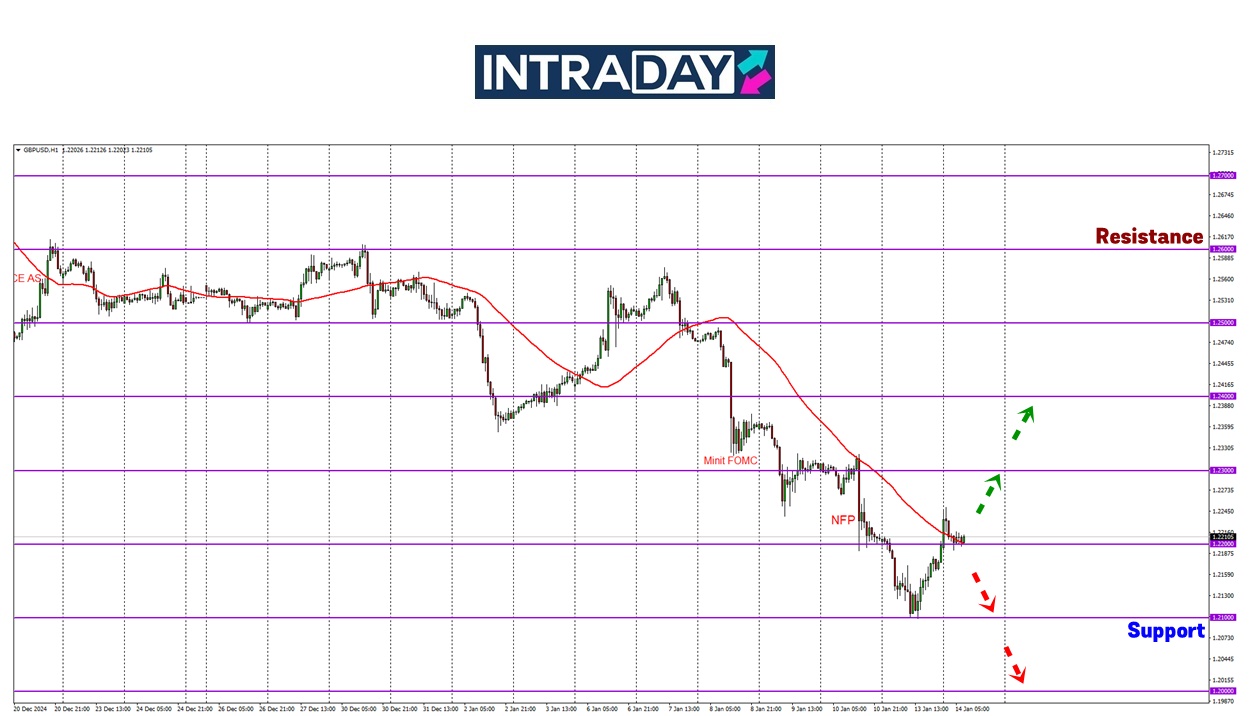Namun jika US dolar kembali mengukuh menekan harga jatuh semula di bawah 1.22000, paras sokongan 1.21000 yang telah dicecah semalam bakal diuji lagi.