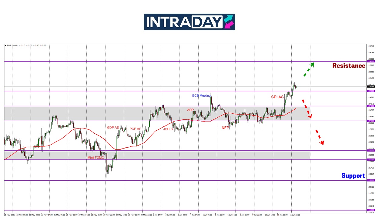 Didorong oleh penyusutan US dolar, harga yang sebelum ini mendatar di zon 1.14000, harga membuat kenaikan hingga menguji zon rintangan 1.15000 di sesi New York selepas data CPI diperhatikan.