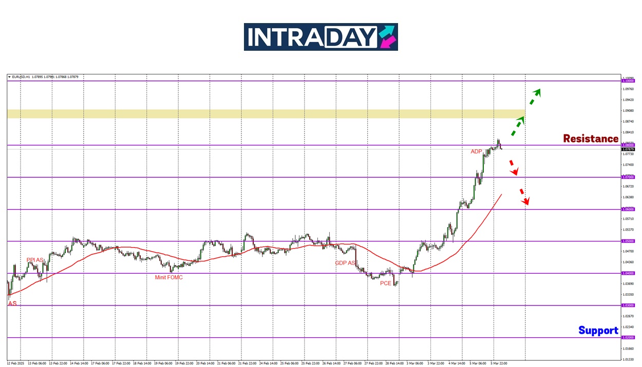 Sekiranya harga berjaya melonjak lagi dari paras semasa 1.08000, kenaikan harga bakal catatkan ketinggian terbaru 4 bulan dengan sasaran beralih ke zon 1.09000.