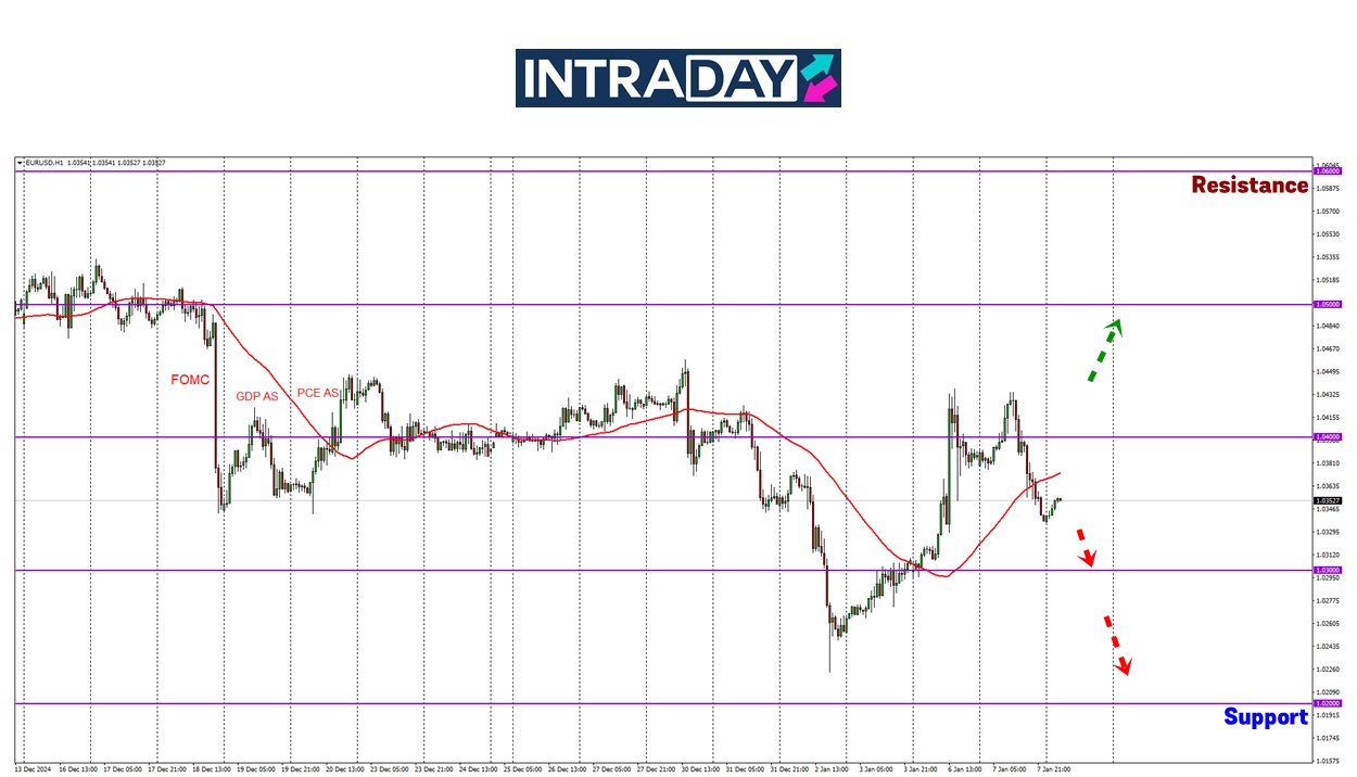 Di sesi Eropah semalam, harga sempat membuat kenaikan untuk menguji sekali lagi paras yang dicapai ketika lonjakan hari sebelumnya sekitar 1.04300 sebelum kemudiannya kembali menjunam.