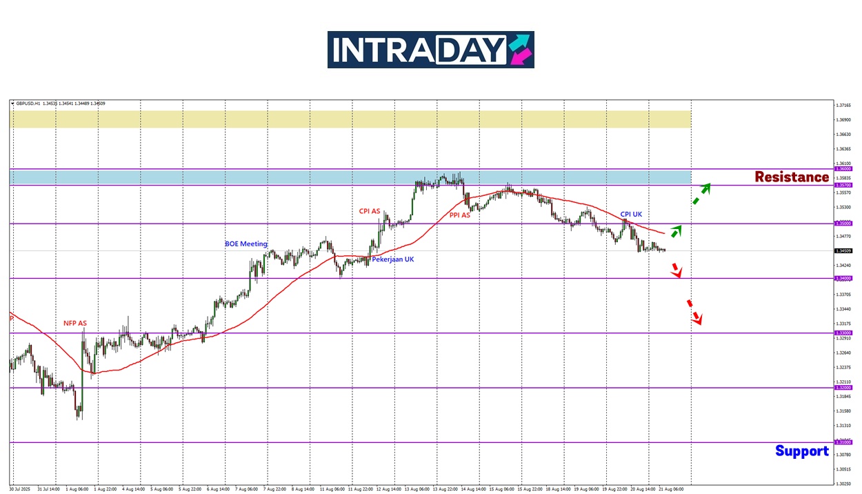 Kenaikan harga menguji paras rintangan 1.35000 selepas kadar inflasi UK catatkan angka yang lebih tinggi dari ramalan bagi bacaan Julai.