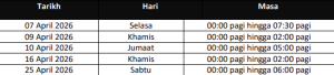 Selain itu, penyelenggaraan turut dijadualkan pada 9 April dan 16 April, masing-masing selama dua jam dari tengah malam hingga 2 pagi. Gangguan lain termasuk tempoh lima jam pada 10 April serta enam jam pada 25 April dari tengah malam hingga 6 pagi.