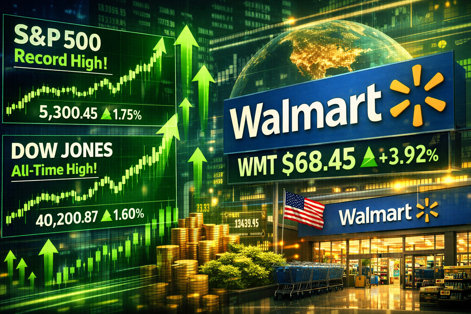Saham Walmart melonjak 3%, sekali gus memberi rangsangan kepada S&P 500 dan Nasdaq selepas gergasi peruncitan itu memindahkan penyenaraian sahamnya daripada NYSE ke Nasdaq pada Disember tahun lalu.