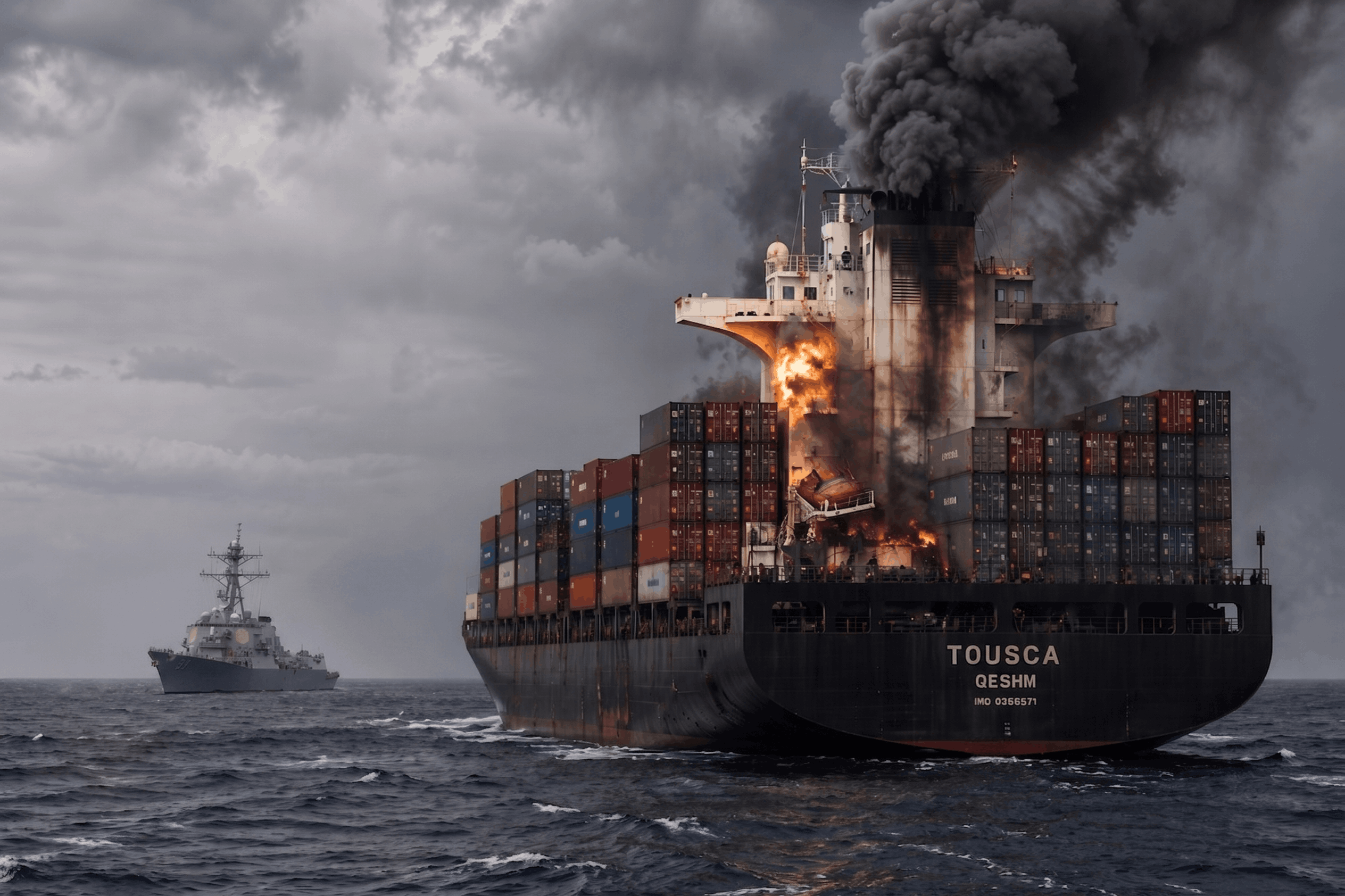 Presiden Donald Trump memaklumkan bahawa kapal pemusnah USS Spruance telah menghalang kapal Iran, Touska, selepas beberapa amaran diberikan. Kapal tersebut akhirnya dilumpuhkan apabila tentera laut AS melepaskan tembakan ke arah bilik enjin sebelum Marin menaiki dan mengambil alih kawalan.