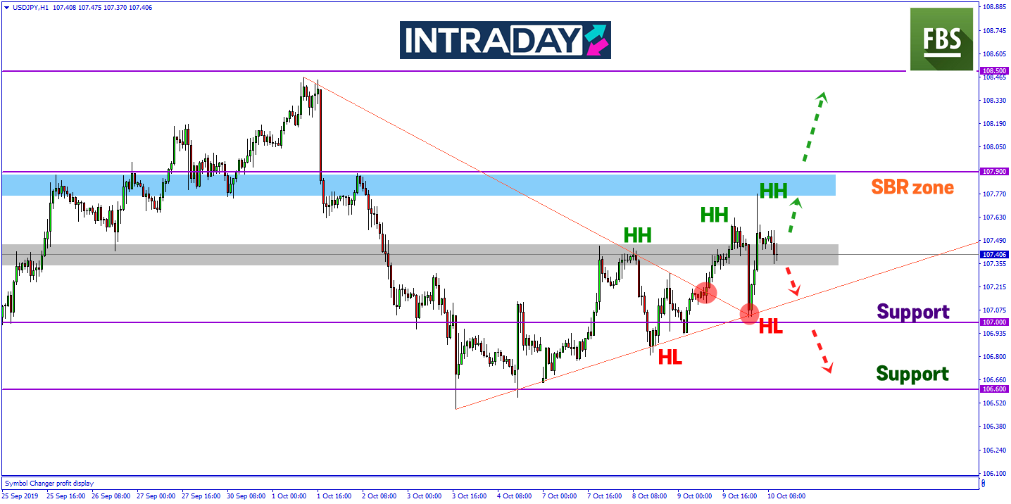 Pada awal sesi Asia bermula hari ini, pergerakan harga pada carta pasangan matawang USD/JPY telah menjunam lebih 40 pips sebelum harga kembali mencatatkan kenaikan lebih 70 pips ke paras zon SBR (support become resistance) hampir mencecah 107.800.